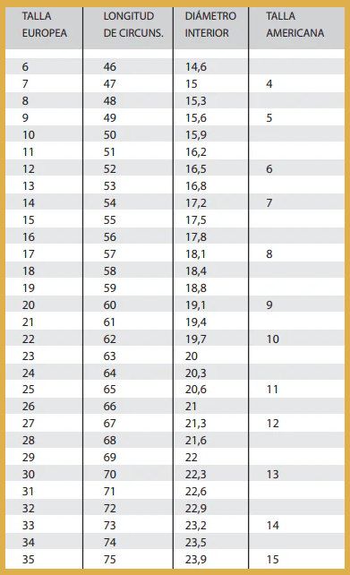 Otra manera es midiendo el diámetro interior de un anillo que te quede bien. Pones el anillo sobre una regla o midiéndolo con un metro y sabrás los milímetros del diámetro INTERIOR.
